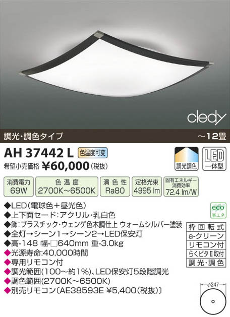 コイズミ照明 KOIZUMI LEDシーリング AH37442L