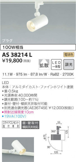 KOIZUMI コイズミ照明 スポットライト AS38214L