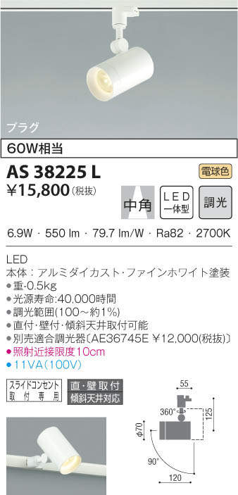 KOIZUMI コイズミ照明 スポットライト AS38225L
