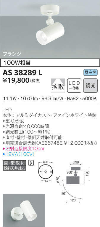 KOIZUMI コイズミ照明 スポットライト AS38289L