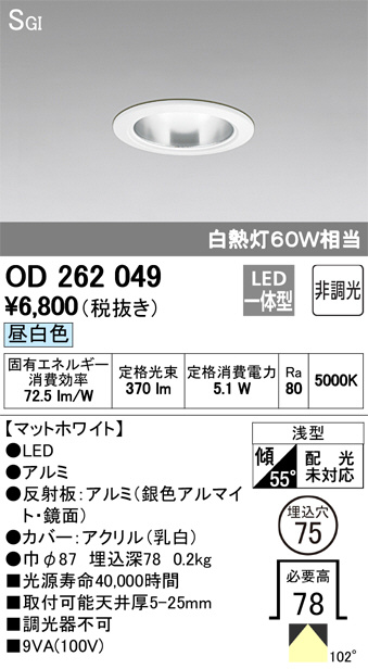 ODELIC オーデリック ダウンライト OD262049