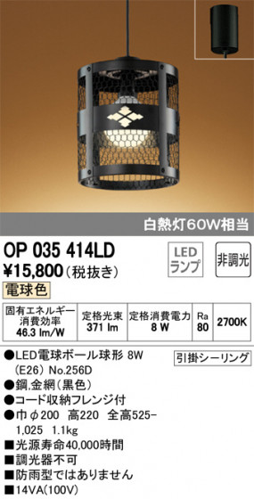 ODELIC オーデリック ペンダントライト OP035414LD