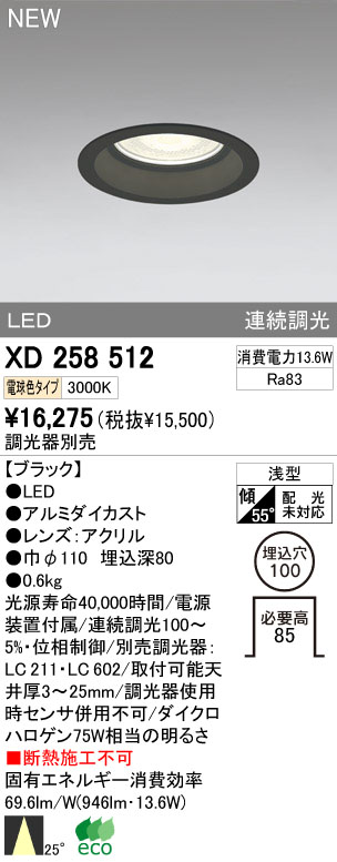 ODELIC オーデリック LEDダウンライト XD258512