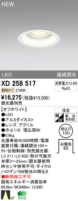 ODELIC オーデリック LEDダウンライト XD258517