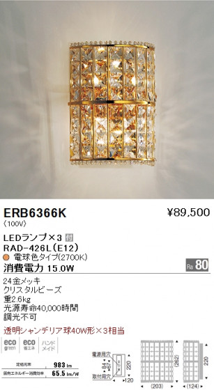遠藤照明 ENDO LED ブラケット ERB6366K