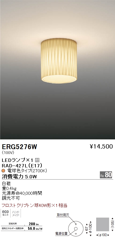 遠藤照明 ENDO LED シーリング ERG5276W
