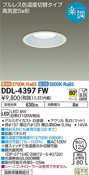 DAIKO 大光電機 色温度切替ダウンライト DDL-4397FW