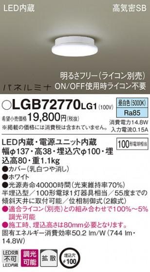 ■寸法:幅φ137・高38・埋込穴φ100・埋込高80