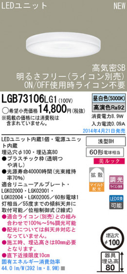 Panasonic LEDダウンライト LGB73106LG1