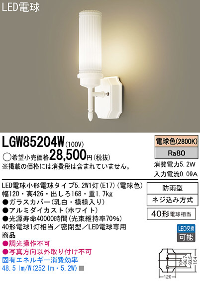 Panasonic LED エクステリア・アウトドア LGW85204W