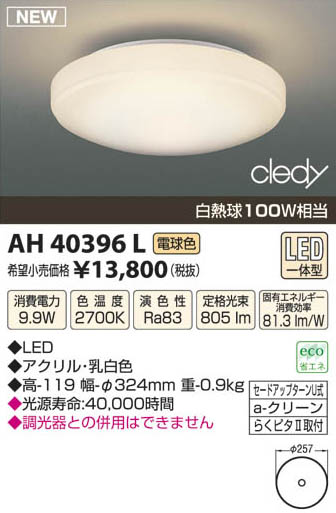 コイズミ照明 KOIZUMI LEDシーリング AH40396L