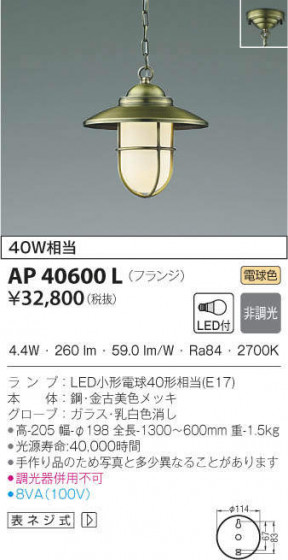 KOIZUMI コイズミ照明 ペンダント AP40600L
