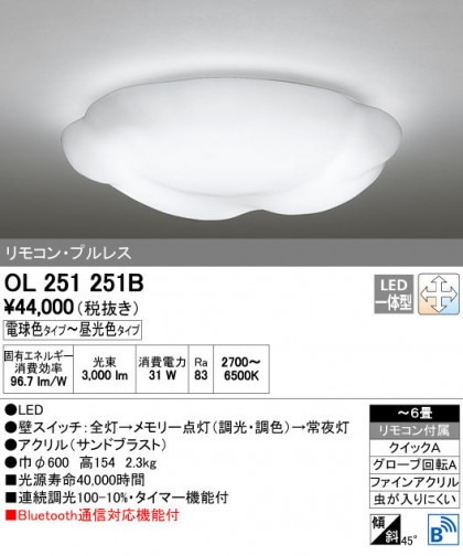 ODELIC オーデリック シーリングライト OL251251B