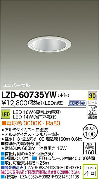 DAIKO 大光電機 LEDユニバーサルダウンライト LZD-60735YW