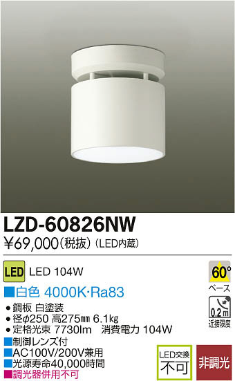 DAIKO 大光電機 LEDシーリングダウンライト LZD-60826NW