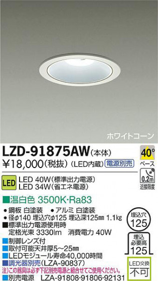 DAIKO 大光電機 LEDダウンライト LZD-91875AW