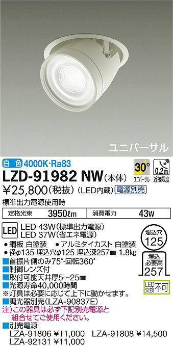 DAIKO 大光電機 ユニバーサルダウンライト LZD-91982NW