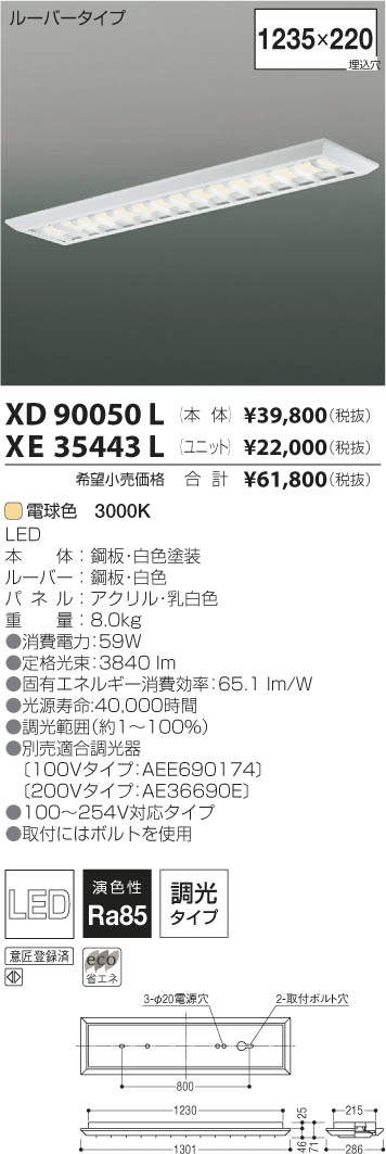 コイズミ照明 KOIZUMI LEDベースライト XD90050L