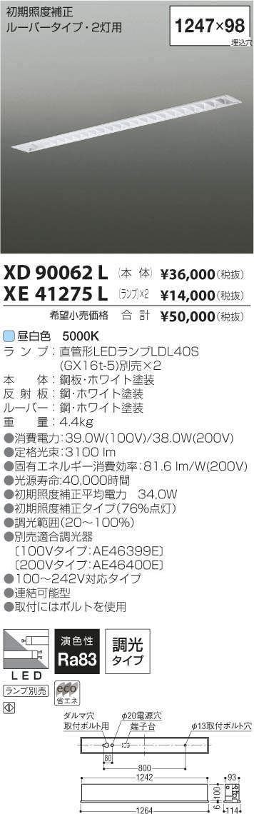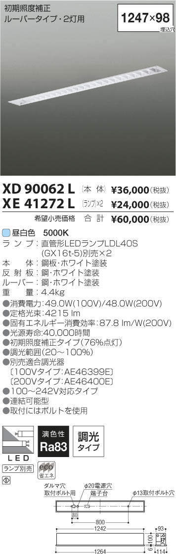 コイズミ照明 KOIZUMI LED ベースライト XD90062L