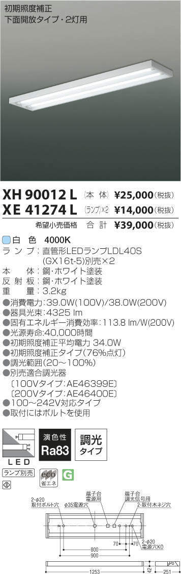 ●別売適合調光器〔100Vタイプ:AE46399E ¥34,000(税抜)〕〔200Vタイプ:AE46400E ¥34,000(税抜)〕