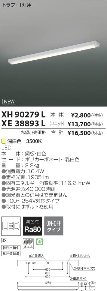 コイズミ照明 KOIZUMI LEDベースライト XH90279L