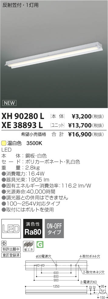 コイズミ照明 KOIZUMI LEDベースライト XH90280L