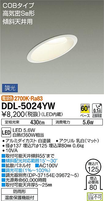DAIKO 大光電機 LED ダウンライト(軒下兼用) DDL-5024YW