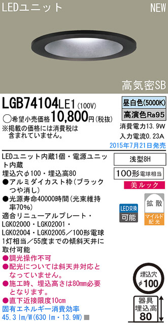Panasonic LED ダウンライト LGB74104LE1