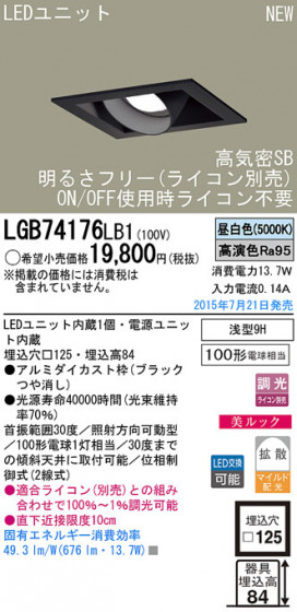 Panasonic LED ダウンライト LGB74176LB1