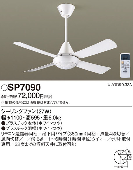 ●本体材質・仕上・色:プラスチック本体(ホワイトつや)・プラスチック羽根(ホワイトつや)