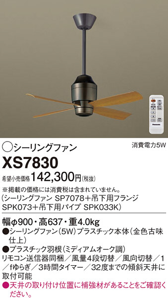 ●本体材質・仕上・色:シーリングファン(5W)プラスチック本体(金色古味仕上)・プラスチック羽根(ミディアムオーク調)