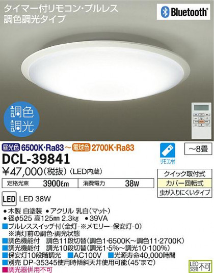 DAIKO 大光電機 LED 調色シーリング DCL-39841