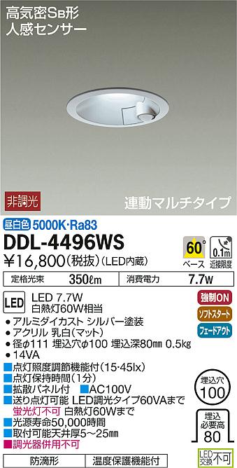 DAIKO 大光電機 人感センサー付LEDダウンライト DDL-4496WS