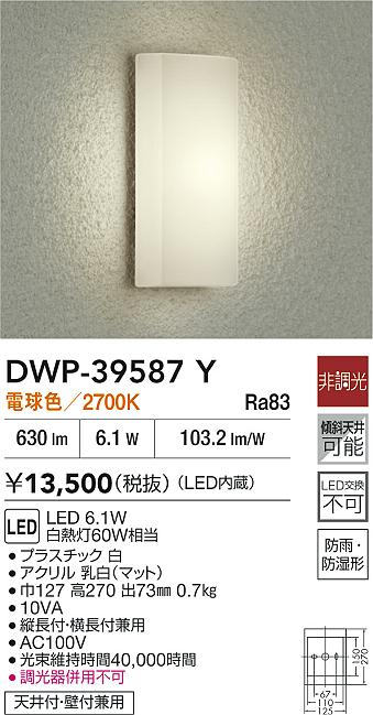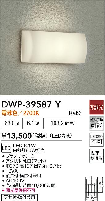DAIKO 大光電機 浴室灯 DWP-39587Y