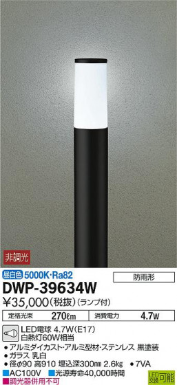 DAIKO 大光電機 LED アウトドアローポール DWP-39634W