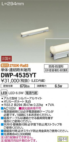 DAIKO 大光電機 LED アウトドアライン照明 DWP-4535YT