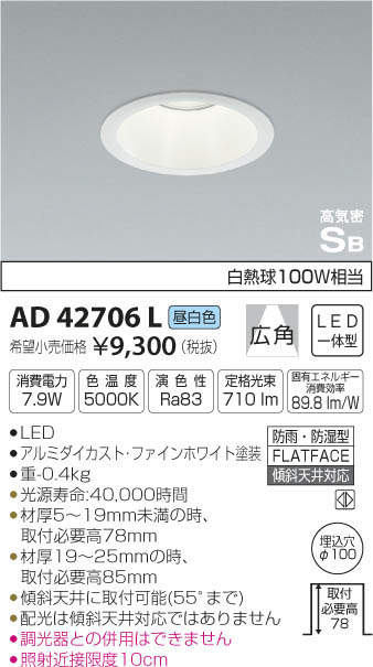 コイズミ照明 KOIZUMI 高気密ダウンライト AD42706L
