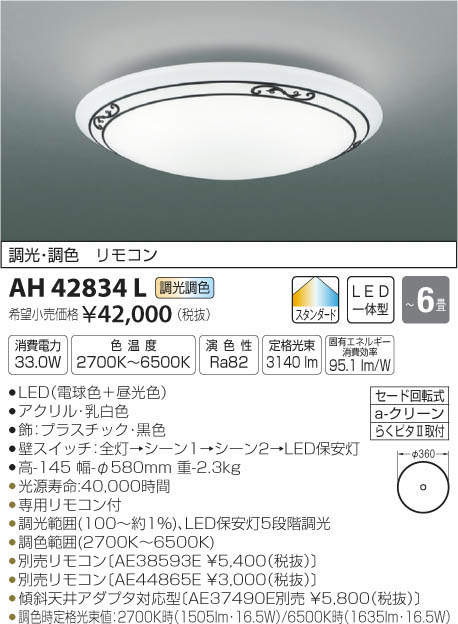 コイズミ照明 KOIZUMI LED シーリング AH42834L