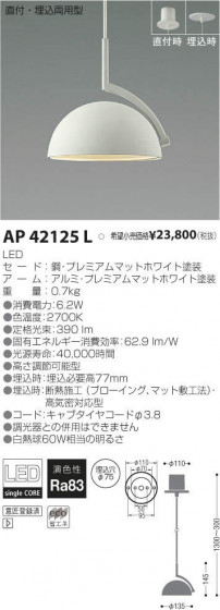 コイズミ照明 KOIZUMI LED ペンダント AP42125L