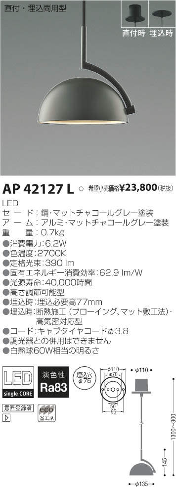 コイズミ照明 KOIZUMI LED ペンダント AP42127L