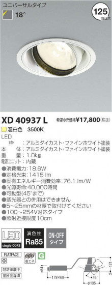 コイズミ照明 KOIZUMI LED ダウンライト XD40937L