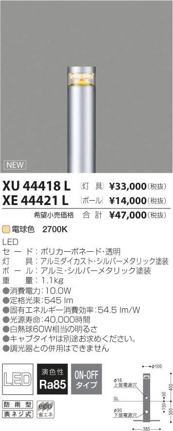 ●地上高-400 幅-φ100 埋込深-300mm 重-1.1kg