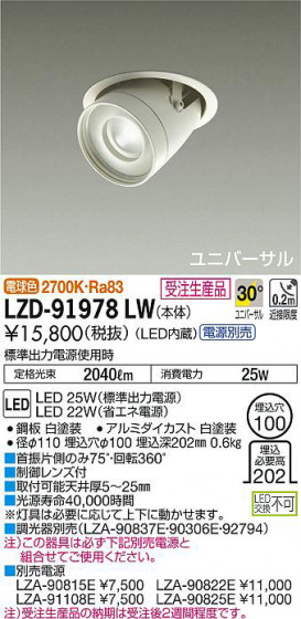 DAIKO 大光電機 ユニバーサルダウンライト LZD-91978LW