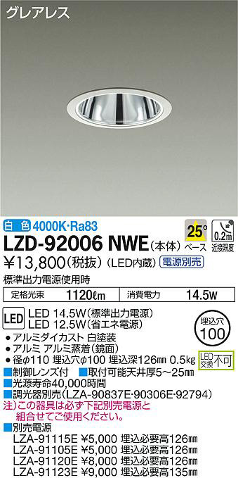 DAIKO 大光電機 ダウンライト LZD-92006NWE