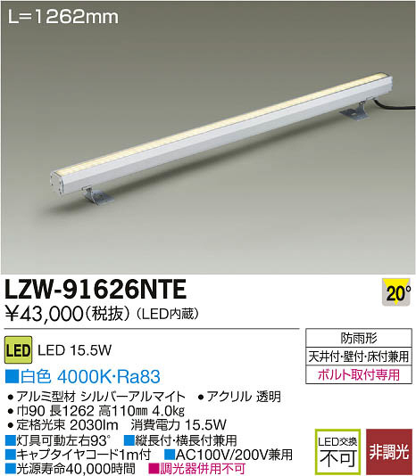 DAIKO 大光電機 LEDアウトドアラインライト LZW-91626NTE