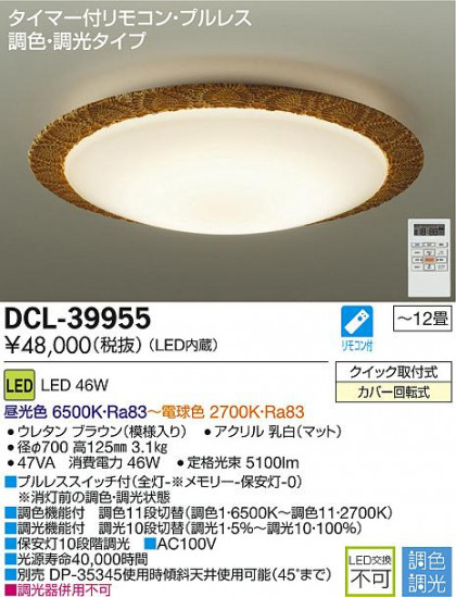 DAIKO 大光電機 LED調色シーリング DCL-39955
