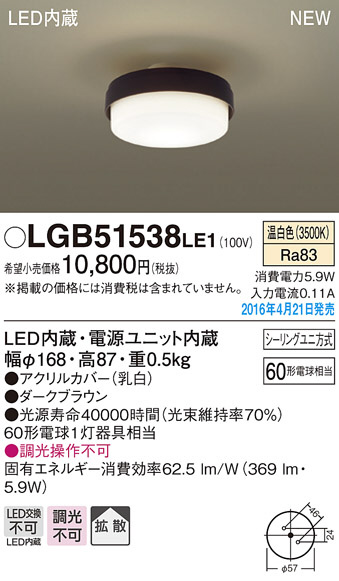 PANASONIC パナソニック シーリングライト LGB51538LE1