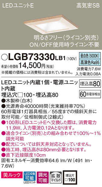 Panasonic ダウンライト LGB73330LB1