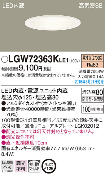 PANASONIC パナソニック バスルームライト LGW72363KLE1