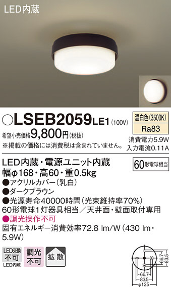 Panasonic シーリングライト LSEB2059LE1